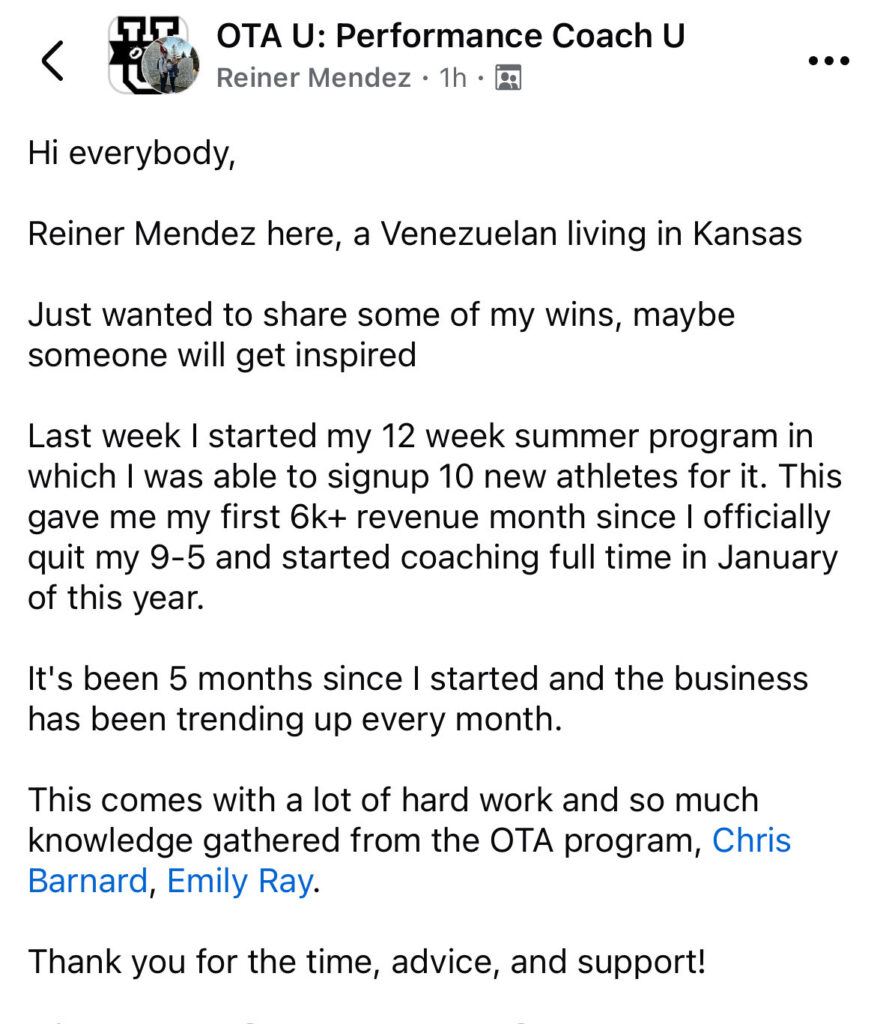 At the same time, he has mentored coaches on how to build successful, profitable training businesses, sharing the exact systems that have helped performance coaches grow and scale their impact.